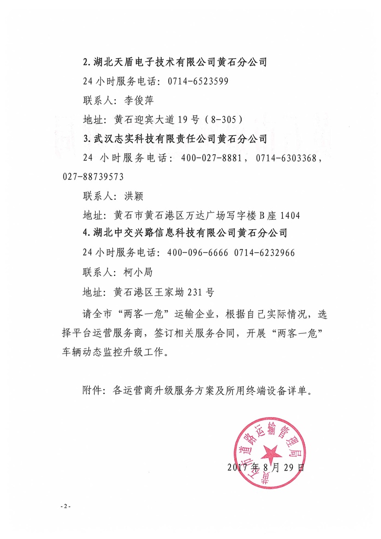 黄石市“两客一危”车辆动态监控升级运营商公告