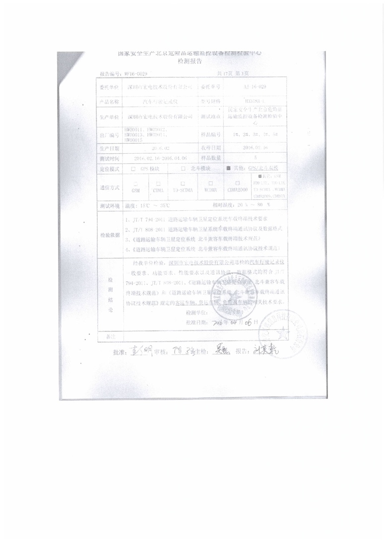 黄石市“两客一危”动态监控运营服务商承诺函及车载设备过检证明