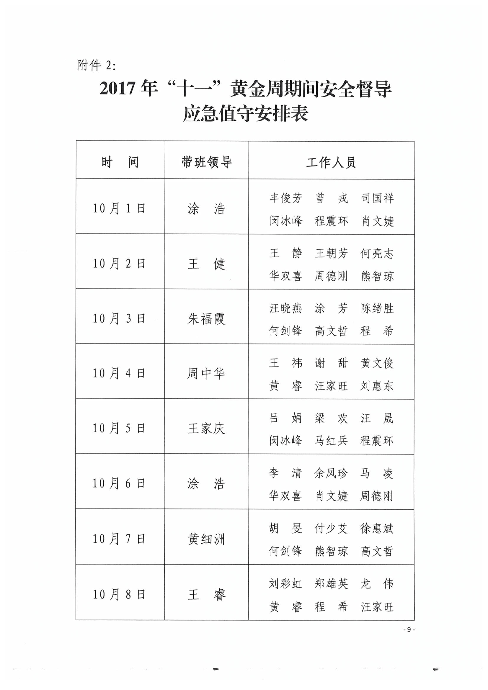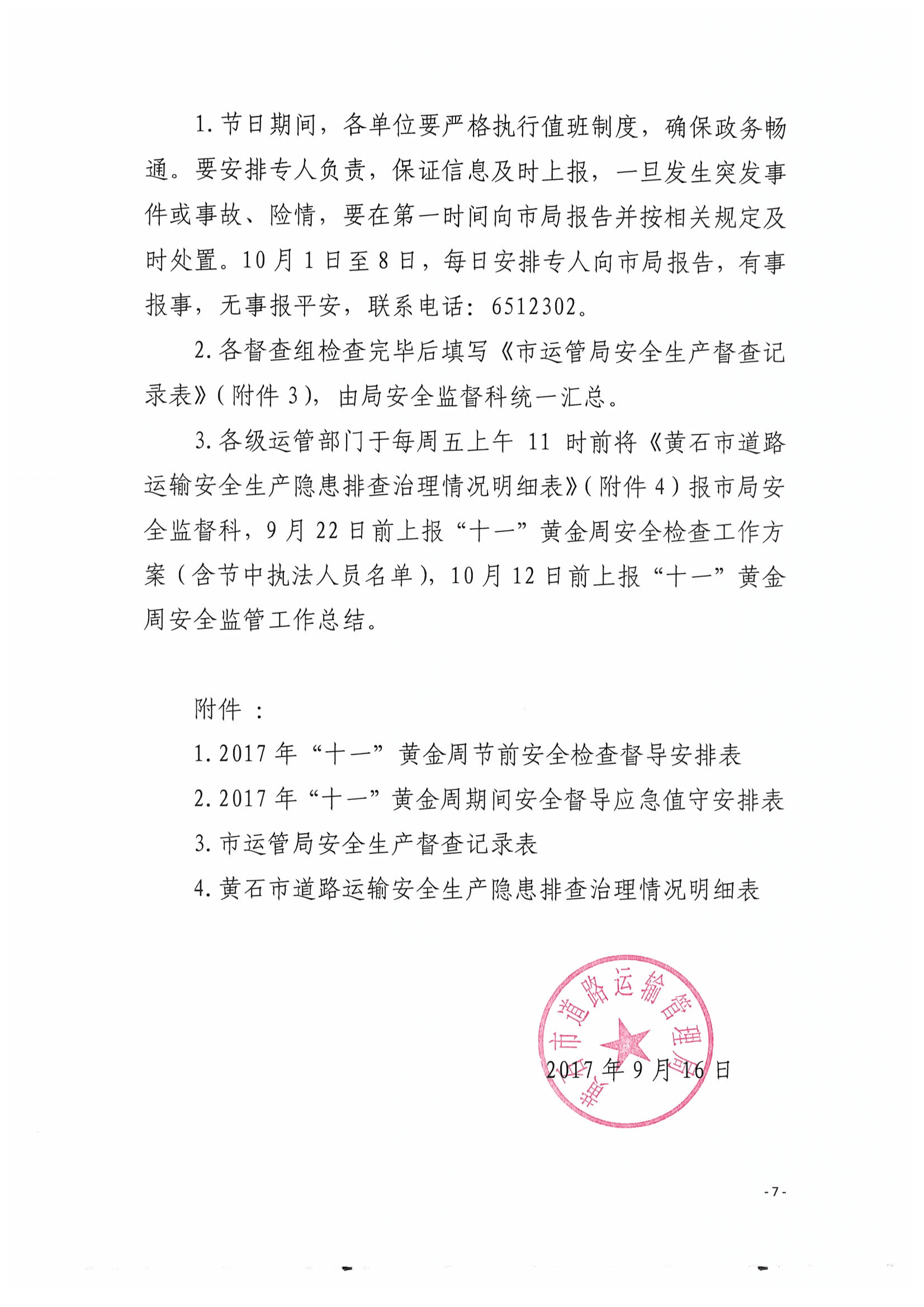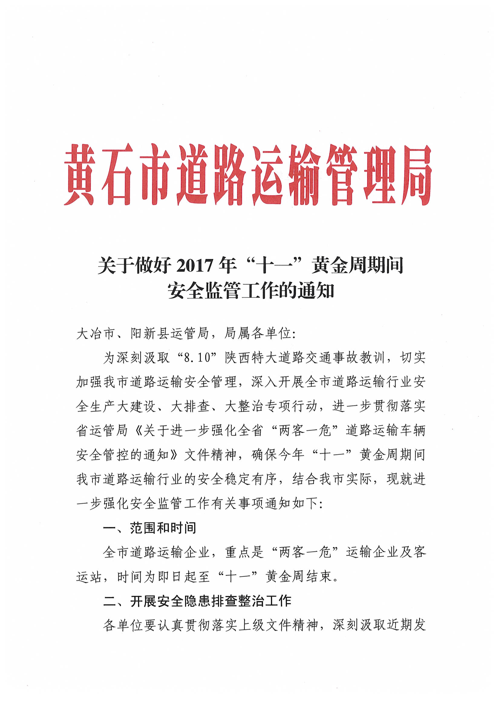 关于做好2017年“十一”黄金周节前、节中安全监管工作的通知