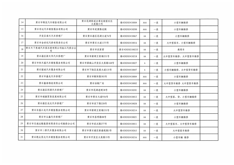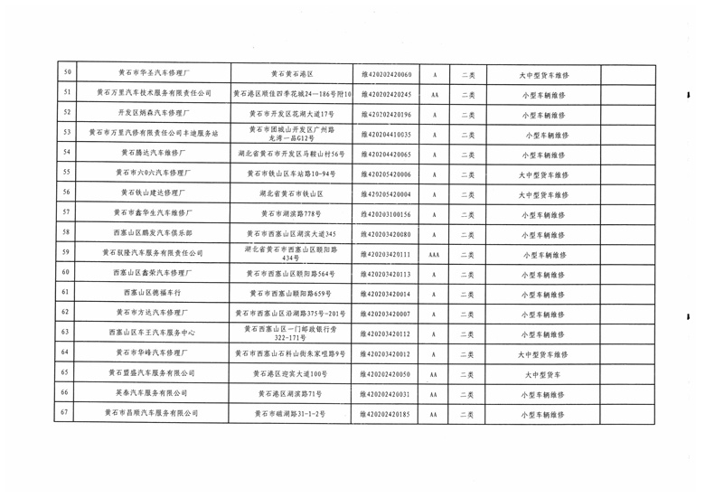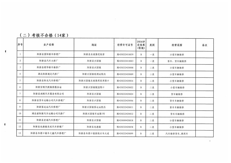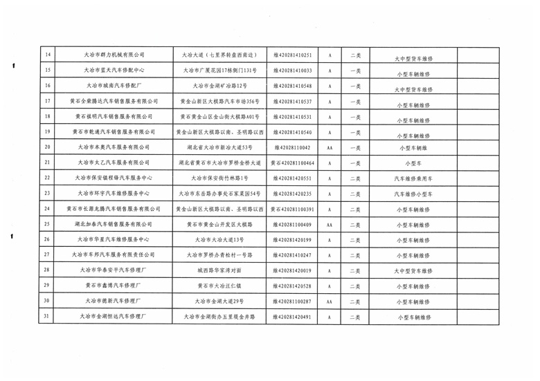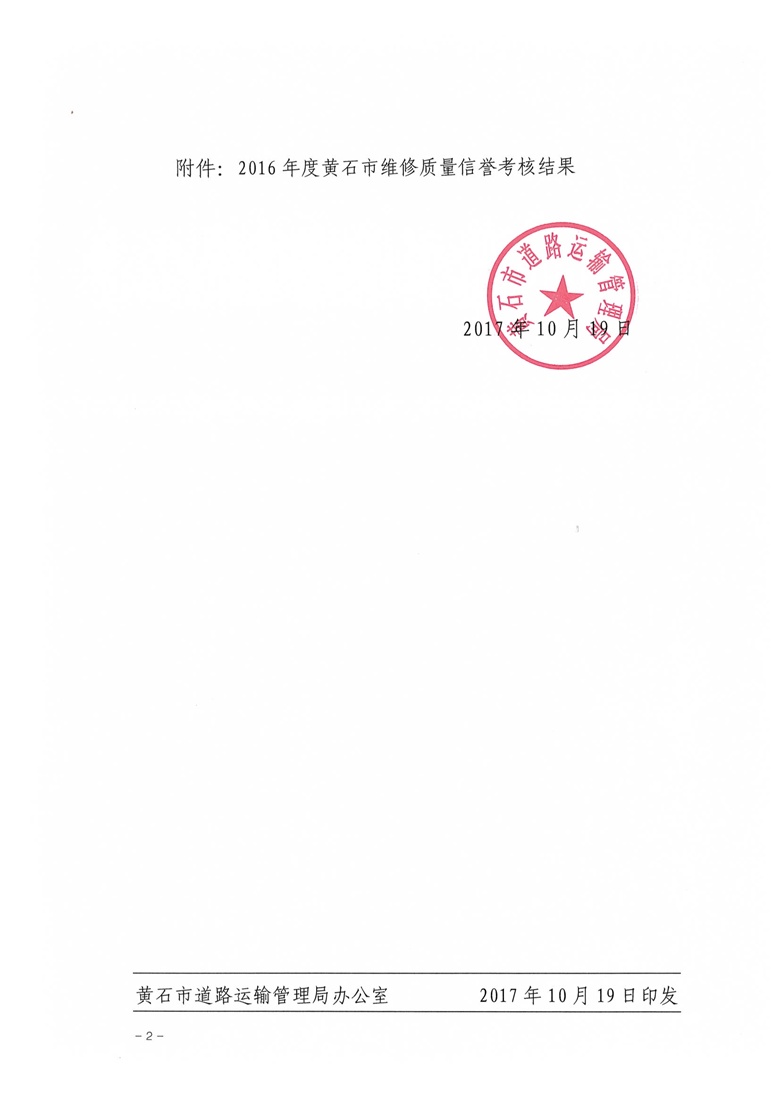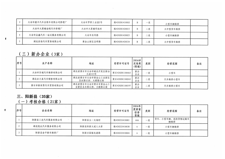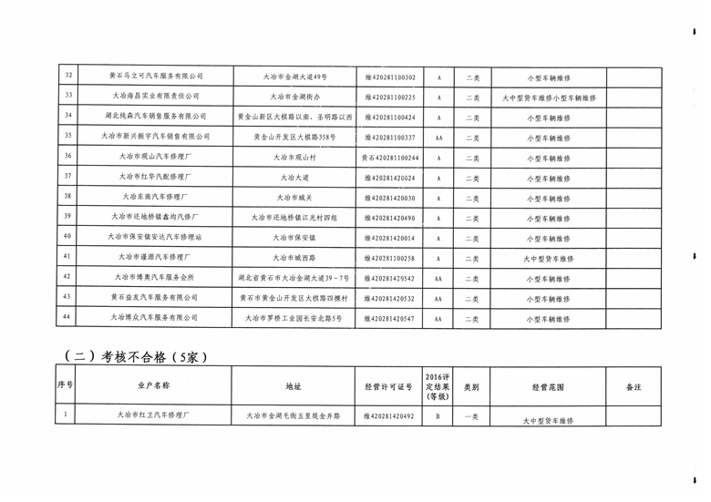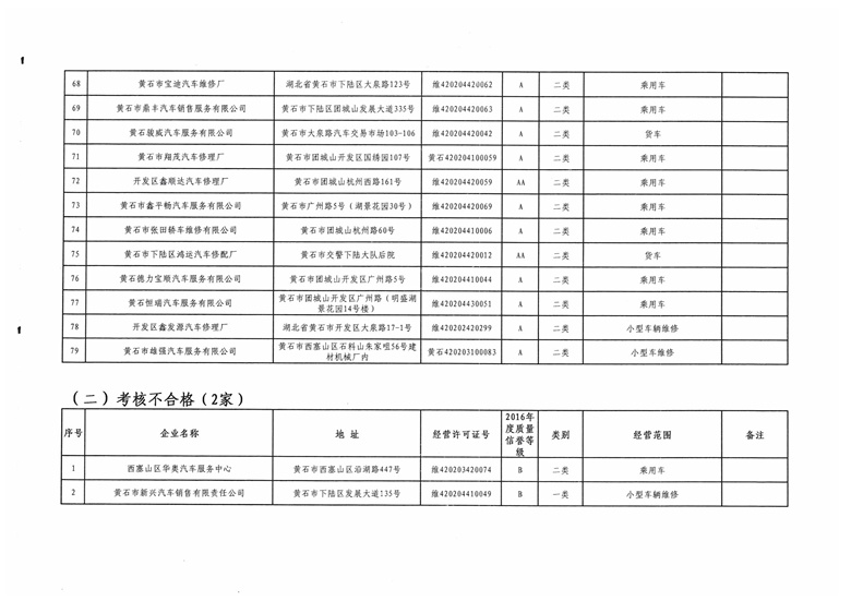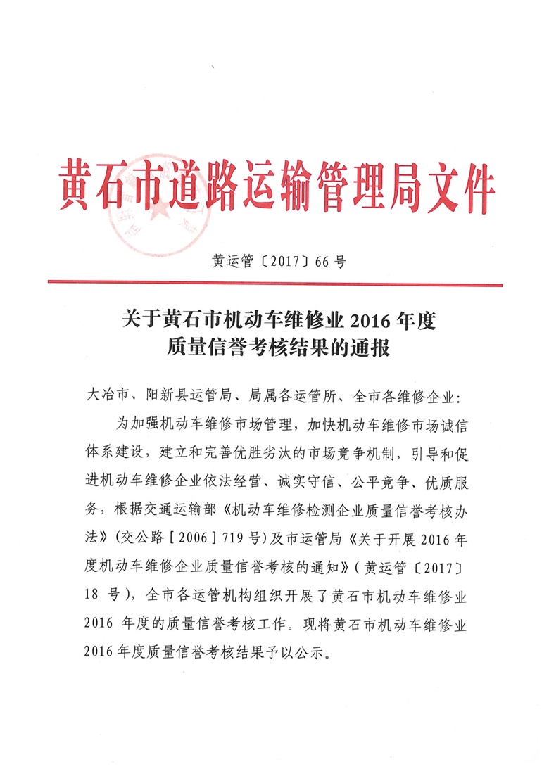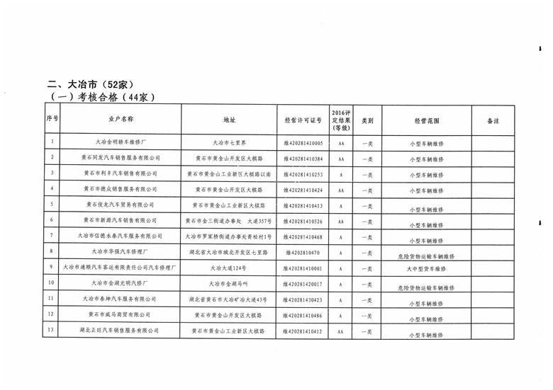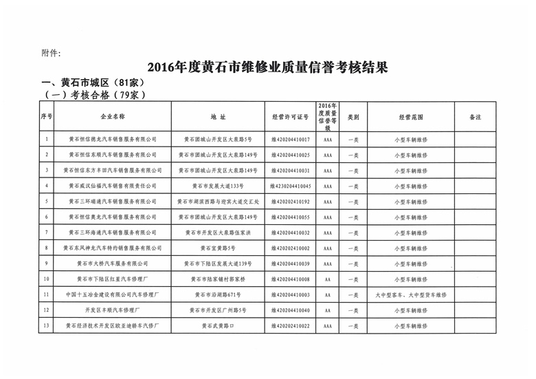 黄石市机动车维修业2016年度质量信誉考核结果公示