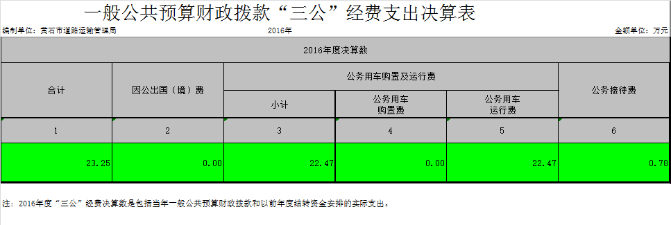 二、单位运行经费安排情况 (一)收支情况 2016年度我局收入合计2186.83万元,其中:财政拨款收入1602.95万元、年初结转和结余583.88万元。交通运输支出2035.11万元。年末结转和结余151.72万元。 (二)一般公共预算财政拨款基本支出情况 1、工资福利支出1484.40万元 ,其中: (1)基本工资506.47万元; (2)津贴补贴69.02万元; (3)奖金407.59万元; (4)绩效工资262.20万元; (5) 机关事业单位基本养老保险缴费239.13万元。 2、对个人和家庭的补助118.94万元,其中: (1)退职(役)费12.37万元; (2)抚恤金0.78万元; (3) 奖励金0.81万元; (4) 住房公积金93.90万元; (5)其他对个人和家庭的补助支出11.09万元。 3、商品和服务支出190.82万元,其中: (1) 办公费14.97万元; (2) 印刷费8.44万元; (3) 咨询费0.20万元; (4) 水费2.21万元; (5) 电费11.10万元; (6) 邮电费6.24万元; (7) 物业管理费1.05万元; (8) 差旅费7.33万元; (9) 维修(护)费9.31万元; (10) 租赁费1.05万元; (11) 会议费0.16万元; (12) 培训费5.98万元; (13) 公务接待费0.78万元; (14) 被装购置费29.27万元; (15) 劳务费3.46万元; (16) 委托业务费3.89万元; (17) 工会经费16.65万元; (18) 福利费39.99万元; (19) 公务用车运行维护费22.47万元; (20) 其他商品和服务支出6.27万元; 4、其他资本性支出12.43万元,其中: (1)办公设备购置费12.43万元。 5、对企业事业单位的补贴,其中: (1)其他对企业事业单位的补贴228.52万元。 (三)一般公共预算财政拨款“三公”经费支出情况 1、公务用车运行费22.47万元,其中: (1)车辆燃油费13.57万元; (2)车辆保险费1.64万元; (3)车辆维修费3.51万元; (4)租车费0.36万元; (5)过路费,停车费等费用3.38万元。 2、公务接待费0.78万元 2016年度我局公务接待费严格控制在预算数2万元内开支。全年公务接待人数140人次,人均56.04元。较上年公务接待费0.57万元增加了0.21万元,增加的主要原因是安全管理力度加大,交叉检查次数增多,接待费相应略有增加。 三、 执行政府采购政策情况 为深化政府采购制度改革的要求,落实主体责任、推进依法采购,我局强化内部流程控制,加强对政府采购活动的内部控制管理。2016年度我局在“财政一体化系统”合同备案金额47.45万元,其中:行业管理印刷费3.83万元、购置办公设备20台(含打印机5台、传真机1台、数码相机2台、电脑12台)金额7.27万元、办公家具2.88万元、行业制服配置28.68万元、资产清查、档案整理委托业务2.9万元、车辆维修保养1.89万元。 四、 固定资产使用情况 2016年度我局固定资产年末数2640.52万元,其中:办公用房1889.59万元、公务车辆5台63.33万元、办公设备687.59万元。待处置资产225.56万元。